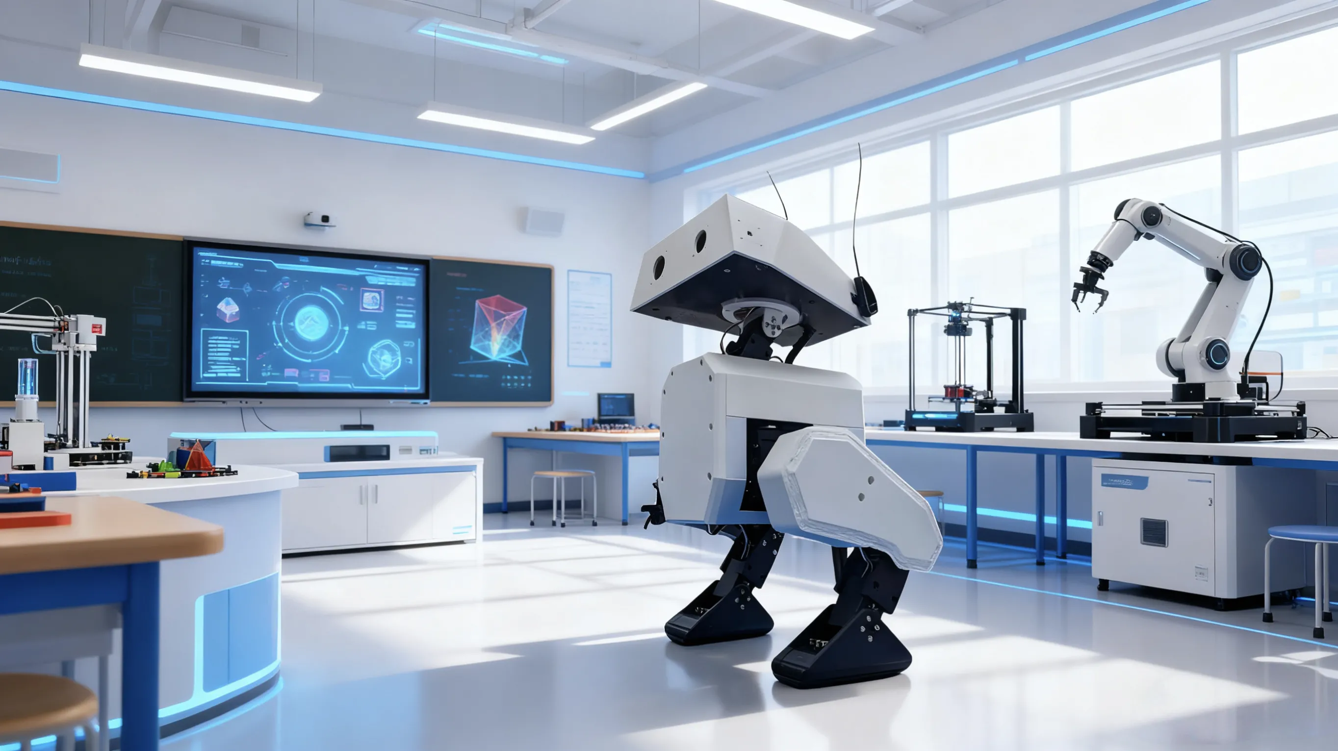 STEM Duck 双足机器人教学平台是一款融合 机械工程、人工智能与编程教育 的创新教具。通过 16 自由度舵机与 BNO055 陀螺仪实现类人步态控制,结合强化学习闭环系统(PPO/SAC 算法)与 ROS 2 开发环境,为学生提供从“虚拟仿真”到“实体落地”的全链路实践体验。产品定位为 中小学 AI 与机器人教育核心平台,通过“硬件操作+算法编程+项目式学习”模式,培养学生的工程思维、AI 算法理解与创新实践能力。